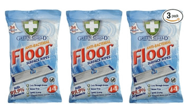 3 x GREENSHIELD ANTIBAC Floor Surface Wipes Packs of 24 Extra Large WIpes quantity