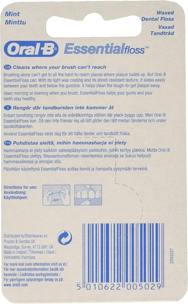 Oral-B Essential Waxed Mint Dental Floss 50m delivers a deep clean that brushing alone can’t reach. Its waxed texture glides easily between teeth, helping remove plaque and food particles from tight spaces with minimal effort. Designed for comfort and durability, it resists shredding while providing a smooth, refreshing mint flavor that leaves your mouth feeling clean and invigorated. Ideal for daily use, this 50-meter roll offers long-lasting value and convenience. Whether you’re maintaining gum health or enhancing your overall oral hygiene routine, Oral-B Essential Waxed Mint Dental Floss ensures a thorough, effective clean every time.
