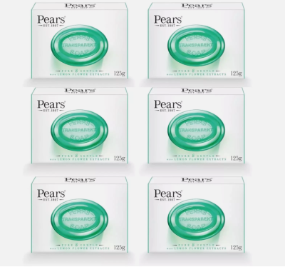 x6 Pears Pure & Gentle Lemon Flower Extract Transparent Soap Bar 125g
